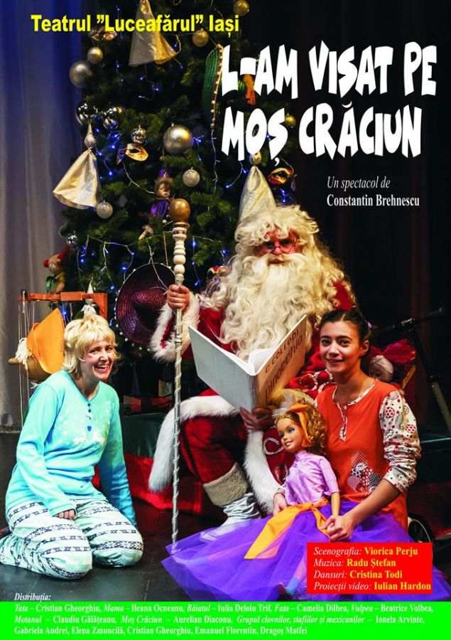 Un spectacol nou-nouț a pregătit trupa Teatrului “Luceafărul” pentru publicul de toate vârstele. Anticipând cu mijloacele teatralității atmosfera sărbătorilor de iarnă, perioadă spre care privim nerăbdători cu toții, spectacolul se intitulează L-am visat pe Moș Crăciun și este realizat de regizorul Constantin Brehnescu. Seniorul artistic la echipei de la “Luceafărul”, Constantin Brehnescu reușește să țină pasul cu evoluția în timp a personajului preferat al lunii decembrie, Moș Crăciun, adaptând povestea la preferințele de azi ale tinerei generații. “Nu există om care să nu-l fi visat pe Moș Crăciun, acest fabulos personaj care în imaginarul nostru e obligat să ne aducă bucurii, indiferent de condiția socio-economică a momentului. De această dată, povestea noastră cu Moș Crăciun se îmbogățește cu personaje din literatura universală, iar împreună ne vor livra în avans, prin intermediul teatrului, bucuria de care avem nevoie cu toții, în fiecare moment, dar mai ales în prezent.”, precizează regizorul Constantin Brehnescu.