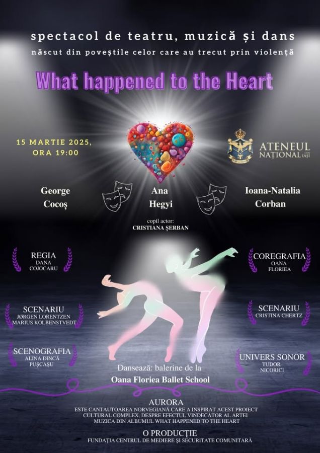 Sâmbătă, 15 martie 2025, ora 19.00 vă invităm la „What happened to the heart” (Sala Mare de Spectacole „Radu Beligan”), un spectacol de teatru, muzică și dans, născut din poveștile celor care au trecut prin violență.