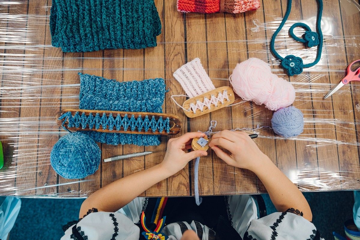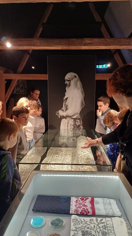 După o incursiune în expoziția „Făurind Transilvania – oameni și meșteșuguri”, copii explorează arta țesutului tradițional, adaptată pe mini-gherghefuri.