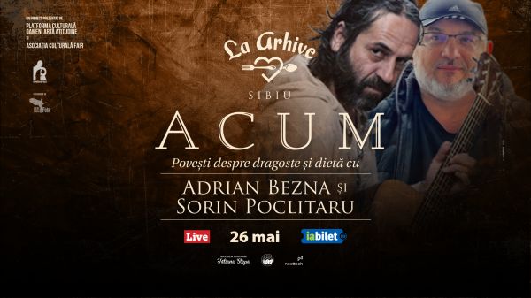 Adrian Bezna și Sorin Poclitaru revin la Sibiu în 26 mai la Arhive Sibiu într-un recital memorabil: „ACUM, povești despre dragoste și dietă!”