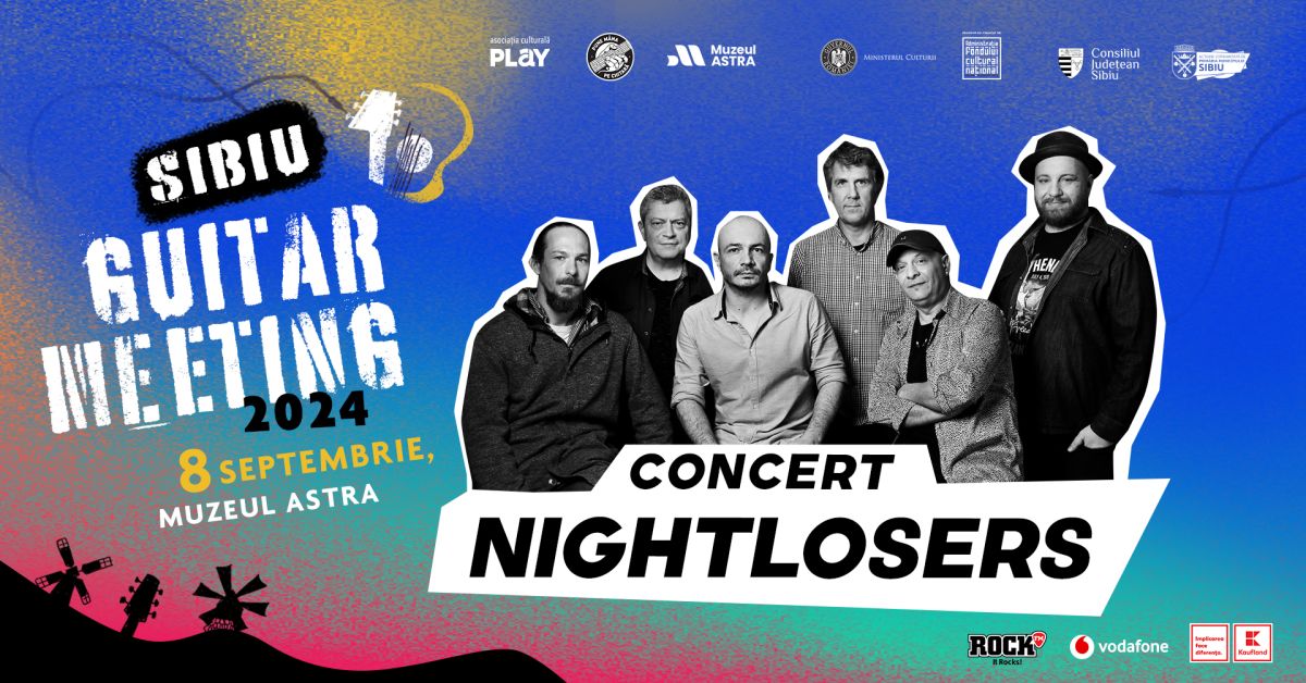 Noaptea ca noaptea, dar să vedeți în ce formă bună vor fi pe zi! Concert NIGHTLOSERS la #SIBIU #GuitarMeeting, ediția aniversară de 10 ani: Muzeul ASTRA | 8 septembrie 2024 | ora 16:00.