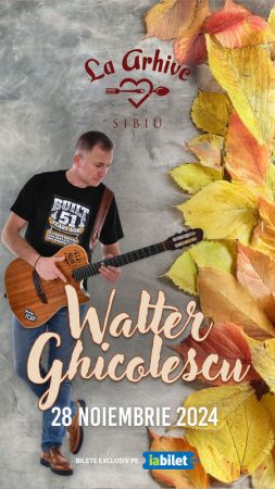 "La Arhive” aduce muzica bună mai aproape de tine, pentru toate gusturile și stările de spirit! Walter Ghicolescu revine la Sibiu pe data de 24 aprilie la Arhive, Sibiu!