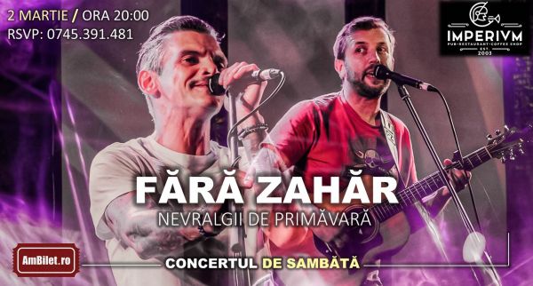 Acesta este concertul de SÂMBĂTĂ 2 martie // ora 20, Bilete online aici https://www.ambilet.ro/.../fara-zahar-nevralgii-de.../