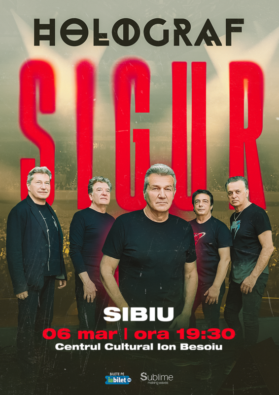 Concertul Holograf „Sigur!” aduce pe scenă o combinație perfectă de hituri clasice precum „Ți-am dat un inel”, „Dincolo de nori” și melodii noi, care continuă să inspire generații. Cu o atmosferă plină de emoție, energie și pasiune, spectacolul promite momente memorabile.