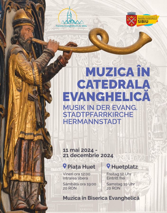 Parohia Evanghelica C.A. Sibiu și-a propus ca și în anul 2024 să continue tradiția concertelor de orgă din Biserica Evanghelică C.A. Sf. Maria din Piața Huet FN, prin organizarea a 62 de concerte în perioada 10 mai 2024 – 21 decembrie 2024.