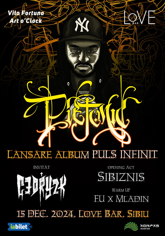 Pietonu', cunoscut pentru stilul său direct și versurile care te pun pe gânduri, își lansează albumul "Puls Infinit". Este cel mai complex album al său de până acum, promițând un adevărat roller-coaster de emoții și trăiri. Și nu vine singur! Alături de el vor urca pe scenă: Cedry2k!