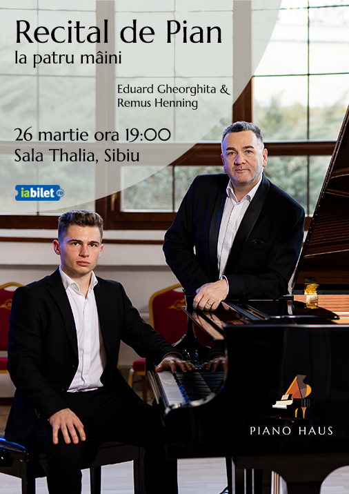 Soliștii Eduard Gheorghiță și Remus Henning doresc să încânte publicul sibian cu lucrări muzicale originale de excepție interpretate la patru mâini. Cei 2 cântă împreună de doi ani și au avut recitaluri în diverse săli de cultură în România (Cluj-Napoca, București, Târgu-Mureș, Alba-Iulia, Abrud, Arad, Sighișoara) Austria (Sankt-Koloman, Bad Ischl, Krems) și Elveția (Lucerna).