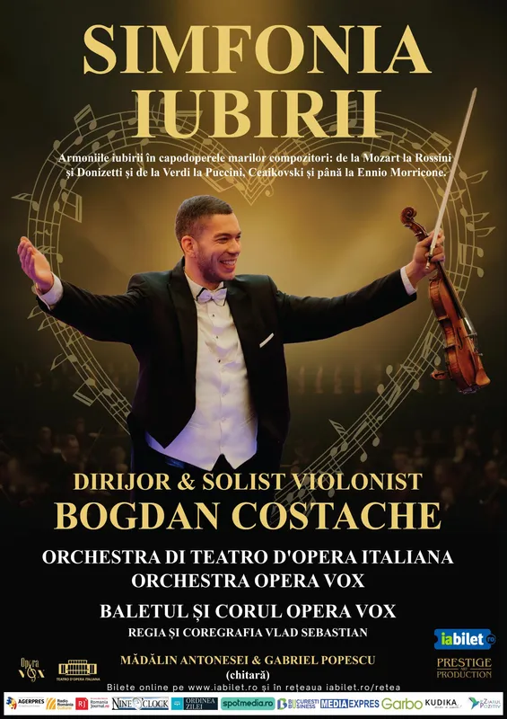 Vă invităm la un spectacol grandios în care Orchestra di Teatro d’Opera Italiana, Orchestra Opera Vox, Baletul și Corul Opera Vox, alături de dirijorul și solistul violonist Bogdan Costache, se împletesc într-o experiență artistică unică.