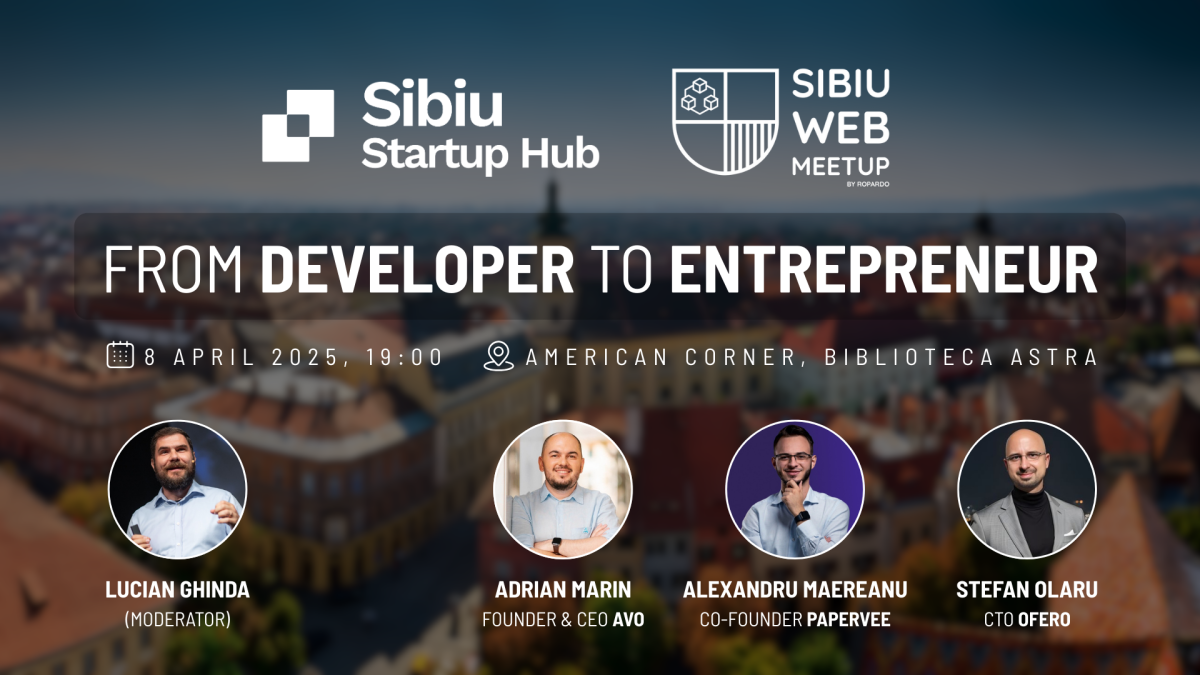Hai la o discuție pe bune, organizată împreună cu Sibiu Startup Hub, unde trei antreprenori tech ne vor povesti despre parcursul lor – cu provocări, lecții învățate și momente de “aha!”.
