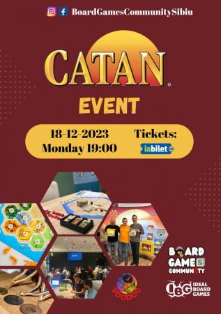 Board Games Community Sibiu și Ideal Board Games te invită Luni, 18 Decembrie 2023, la ora 19:00, la un nou eveniment/campionat de Catan.