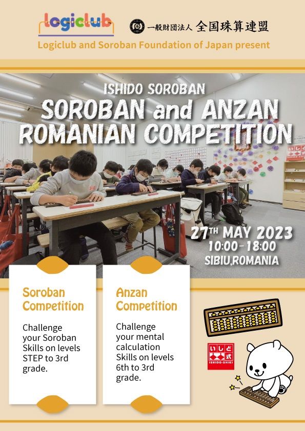 Va anuntam cu mare entuziasm ca in data de 27 Mai 2023 va avea loc la Sibiu, la sediul nostru, Competitia de Soroban si Anzan organizata de Logiclub in colaborare cu scoala japoneza partenera, Ishido Shiki.