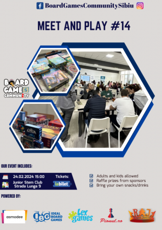 Board Games Community Sibiu te invita Sambata, 24 februarie 2024, la un nou eveniment de boardgame-uri care va acea loc in cadrul localul Junior Stem Club de pe Strada Lunga nr 9 din Sibiu.