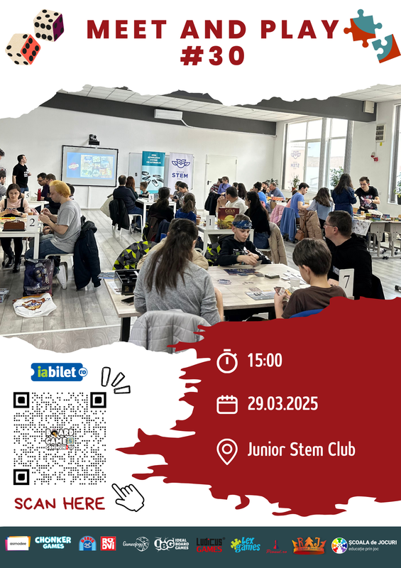 Acest eveniment este posibil datorită colaborării cu partenerii noștri: Asmodee, ChonkerGames, D-Tooys/Roovi, Gameology, IdealBoardGames, LexGames, LudicusGames, Pionul.ro, Regatul jocurilor și Școala de jocuri, care ne oferă o selecție variată de jocuri pentru toți participanții.