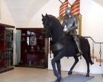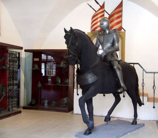 Prima parte a expoziţiei cuprinde piesele de echipament militar şi harnaşament din epoca medievală, cu referiri speciale la evoluţia pe care acestea au avut-o în strânsă legătură cu armamentul.