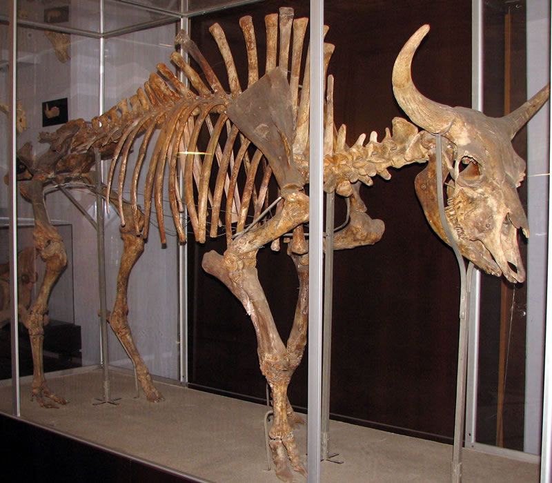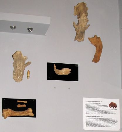 Se află expuse câteva piese fosile din colecţia Societăţii unde se poate admira un exemplar de Bison priscus, strămoşul zimbrului european şi al bizonului, respectiv bourului din America de Nord. Scheletul de zimbru este foarte valoros pentru că este complet, toate oasele fiind găsite. Descoperit în anul 1900 într-o carieră de piatră din Sighişoara a fost restaurat si montat astfel încât la 8 ianuarie 1901 putea fi admirat în expoziţia permanentă a muzeului. Înălţimea acestui strămoş al bourului european este de 180 cm, în timp ce dimensiunile unei vite actuale nu depăşesc 125 cm. Alături de această piesă impresionantă mai pot fi văzute resturi scheletice (un femur, fragment de defensă, molari, vertebre) de mamut şi de rinocer lânos descoperite în cartierul Guşteriţa din Sibiu precum şi resturi scheletice ale ursului de peşteră (Ursus spaeleus).
