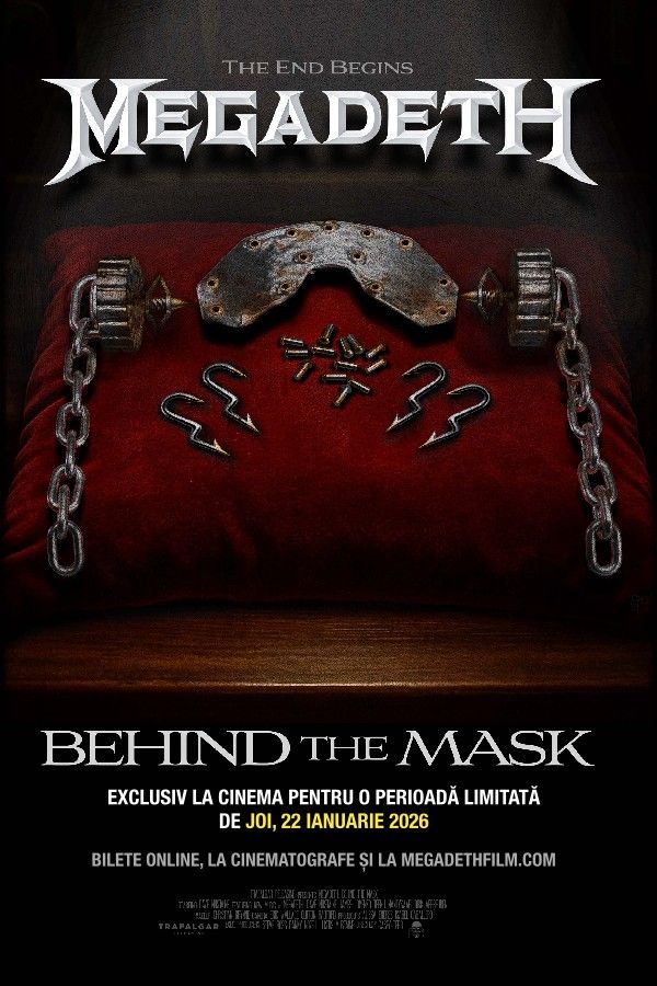 BEHIND THE MASK este un eveniment cinematografic emblematic, în care Dave Mustaine expune 40 de ani de MEGADETH, împărtășind povești nespuse din trecutul trupei și focul creativ care îi motivează.
