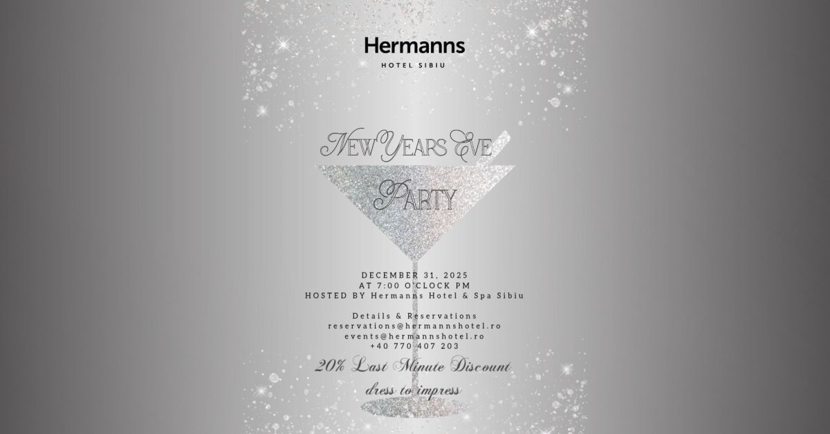 La cumpăna dintre ani, când dorințele se leagă în șoapte și lumina stelelor se reflectă în pahare de prosecco, Hermanns Hotel & Spa Sibiu te invită să pășești într-un Revelion de poveste!