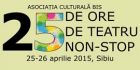 Va invitam alaturi de noi, la editia cu numarul V a festivalului "25 de ore de teatru non-stop", Sibiu, 25-26 aprilie 2015. 25 de ore de teatru non-stop este un festival-maraton organizat de o structura independenta, Asociatia Culturala BIS Sibiu.