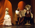 Vă invităm într-un loc magic! Un loc în care florile vorbesc cu glas de clopoţel şi ne măsoară timpul şi ritmul vieţii noastre, în care Zânele sunt Zâni, mesele sunt vii şi ne servesc cu fructe jucăuşe, în care bufniţele sunt povestitori şi servitorii castelului vorbesc fiecare în limba lui şi totuşi se înţeleg de minune. Un loc în care e atât de uşor să te îndrăgosteşti de o fată frumoasă, care seamănă cu un vis de floare, cu o petală de lumină pe care chiar dacă nu o vedeţi, voi cei cu Zâne în priviri, ştiţi că e acolo, în colţul ochiului care nu a uitat niciodată de luminile dintâi ale copilului din voi. Locul acesta se numeşte Teatrul Gong din Sibiu iar povestea e a Frumoasei şi a Bestiei - Bogdan Drăgulescu, regizorul spectacolului