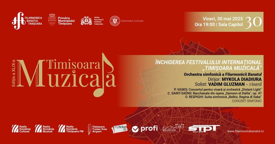 Ediția a XLIX-a a Festivalului Internațional „Timișoara Muzicală” se încheie, vineri, 30 mai 2025, cu un concert susținut de Orchestra simfonică a Filarmonicii Banatul Timișoara, sub conducerea dirijorală a maestrului Mykola Diadiura.