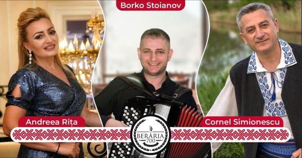 Soliștii Andreea Rîța și Cornel Simionescu, împreună cu orchestra Borko Stoianov, vă vor încânta cu muzică live.