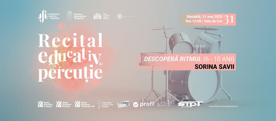 Un recital antrenant și creativ dedicat copiilor care sunt gata să înțeleagă muzica nu doar ca spectacol, ci și ca mod de exprimare. Sorina Savii, percuționistă la Opera Națională Română din Timișoara, îi ghidează pe cei mici într-o călătorie ritmică, folosind instrumente de percuție și exerciții ludice care încurajează ascultarea activă și auto-exprimarea prin muzică.