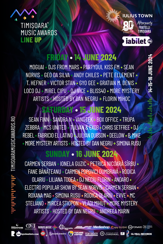 Bucură-te de Festivalul TMA, de festivitatea de premiere a artiștilor din județul Timiș și lasă-te sedus de ritmurile începutului de vară, în perioada 14-16 iunie 2024 la Iulius Town Timișoara și la un extended afterparty de exceptie la Fratelli Timisoara.