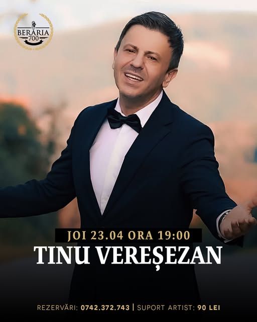 Mare motiv de bucurie : ne întâlnim, la Berăria 700, cu unul dintre numele care duc mai departe sufletul muzicii bănățene – Tinu Vereșezan. Cu o carieră construită pe autenticitate și respect pentru tradiție, Tinu a adus de-a lungul anilor pe scenă cântece care spun povești adevărate, din inimă. Seara de joi promite o atmosferă caldă, în care fiecare acord se leagă firesc de gustul mâncării ca acasă și de bucuria de a fi împreună. La noi se simte așa cum se cuvine într-o berărie cu suflet. Vă așteptăm să trăim împreună o seară în care tradiția prinde glas.