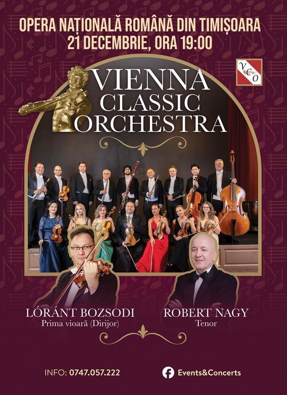 Vienna Classic Orchestra prezinta, pentru prima data in Romania, spectacolul „Vienna Classic Christmas”. Maiestria desavarsita a artistilor Orchestrei, al carei nume este sinonim, pe plan international, cu interpretarea autentica a muzicii vieneze, dar si interesul deosebit manifestat de public vor face cu siguranta ca toate spectacolele sustinute in Romania sa fie sold out.