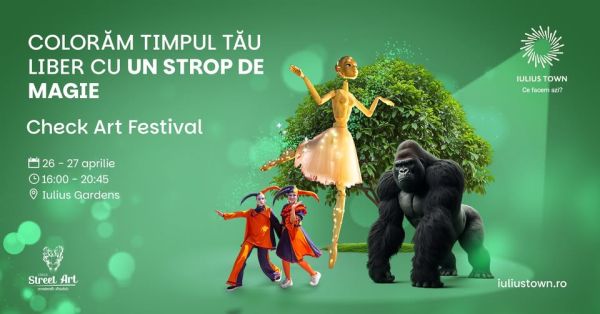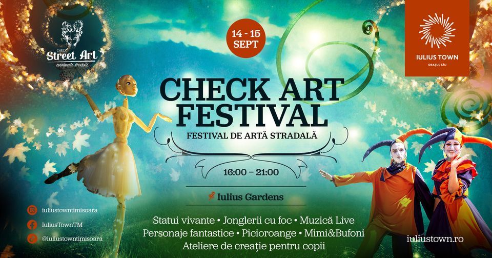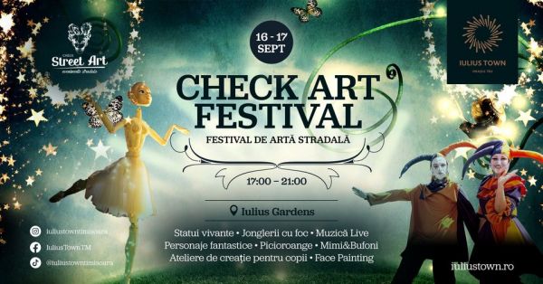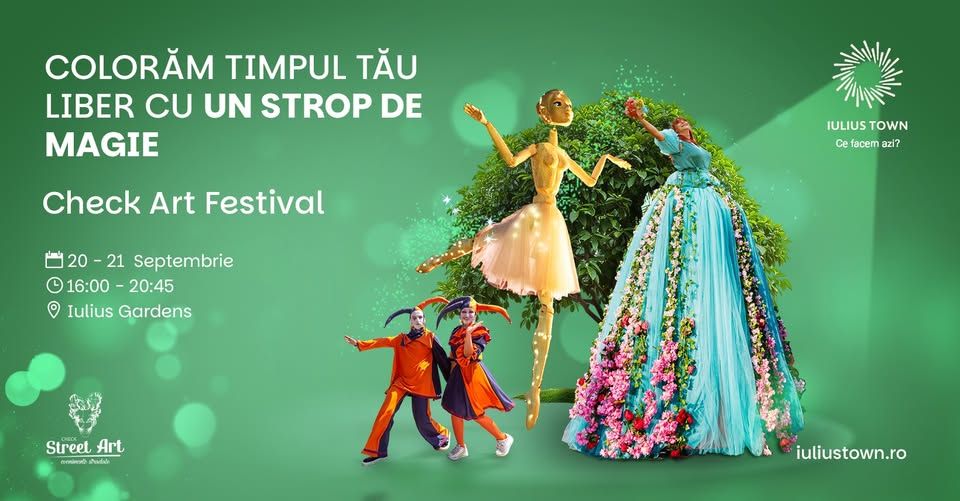 Unul dintre cele mai așteptate evenimente de toamnă, Check Art Festival, aduce din nou la Iulius Town Timișoara atmosfera vibrantă a spectacolelor stradale și a artei care prinde viață. Anul acesta, festivalul are loc pe parcursul a două zile, sâmbătă și duminică, 20 și 21 septembrie, începând cu ora 16:00, și promite să transforme întregul parc într-o scenă plină de culoare și emoție.
