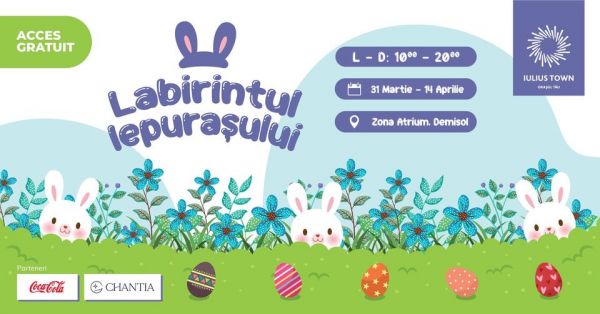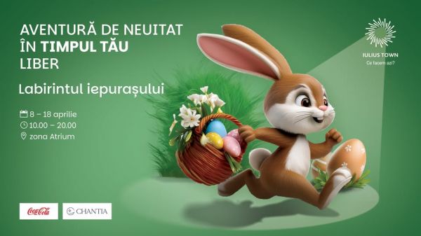 Ai acasă un mic explorator curios, plin de energie și spirit de aventură? Labirintul Iepurașului, situat la demisolul Iulius Mall, în zona Atrium, găzduiește cel mai distractiv treasure hunt, special conceput pentru copiii între 3 și 8 ani. Vânătoarea de ouă are loc zilnic între orele 10.00 -20.00, iar micuții vor căuta indicii speciale, ascunse de Iepurașul de Paște.