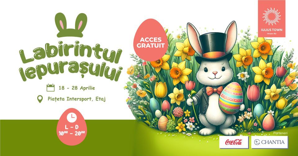 Te așteptăm cu drag să te bucuri de magia Paștelui în Labirintul Iepurașului la Iulius Town Timișoara!