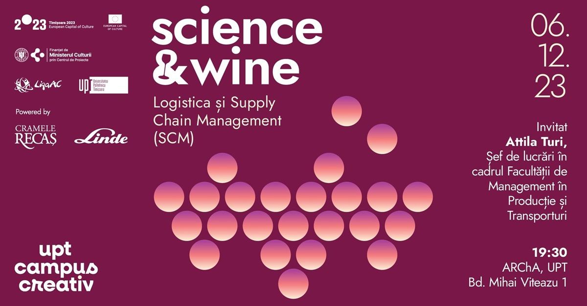 Pe data de 6 decembrie, doritorii sunt invitați să participe la Science & Wine #4 - Logistica – Supply Chain Management, un eveniment dedicat cercetării, unde conferențiarul universitar Attila Turi, expert în domeniu, va dezvălui aspecte esențiale ale logisticii și va ilustra relevanța sa în contextul actual.