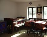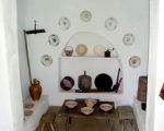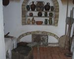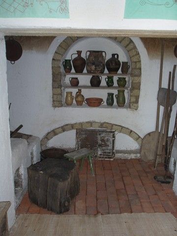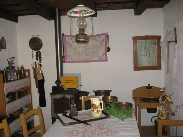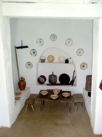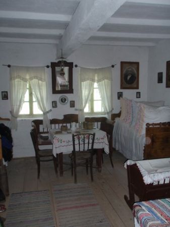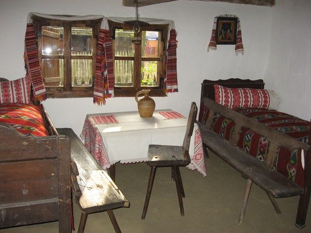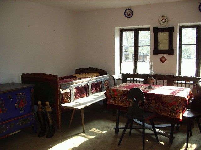 In secolul XIX se generalizeaza casele cu trei incaperi. Camera mare numita de romani soba curata, soba frumoasa, destinata oaspetilor, era nelocuita iar mobilierul simplu era compus din doua paturi dispuse paralel, intre care in dreptul ferestrelor era masa avand de o parte si de alta, pe langa paturi doua banci lungi, iar la capete cate un scaun. Un blidar cuier servea pentru vase decorative si haine mai bune, iar lada de zestre incrustata sau pictata cu motive florale, pentru tesaturi. Soba oarba din camera mare avea gura de foc din bucatarie. Camera mica era camera de lucru si locul de convietuire al intregii familii si continea un pat cu doua capete , un razboi de tesut, o masa. O amenajare asemanatoare o intalnim la ucraineni si la slovaci. In tinda se gatea mancarea la vatra cu horn deschis. Mobilierul consta dintr-o masa mica si scaunele joase cu trei sau patru picioare, o bancuta pentru vasele de apa, blidare sau rude pentru obiectele de uz gospodaresc. Prezinta un mare interes decorativ comarliile, acele firide cu polite pentru vase intalnite la romani si slovaci (vezi tinda romaneasca din Casa din Jebel si tinda slovaca). In camere gasim piese decorative si functionale , tesaturi de interior viu colorate tesute de romanca in casa, icoane incadrate de stergare albe bogat decorate la capete, blide de ceramica sau faianta, oglinda , ceasul, ponievi sau cilimuri colorate pe paturi, stergare decorative la ferestre. Perdelute tesute, brodate sau crosetate le gasim la germani, maghiari, slovaci si sarbi. Existau diferente: la germani si maghiari acoperitorile de pat si fetele de masa erau din stofa, cumparate din comert, iar celelalte broderii erau executate cu acul pe panza industriala alba de catre taranci.
