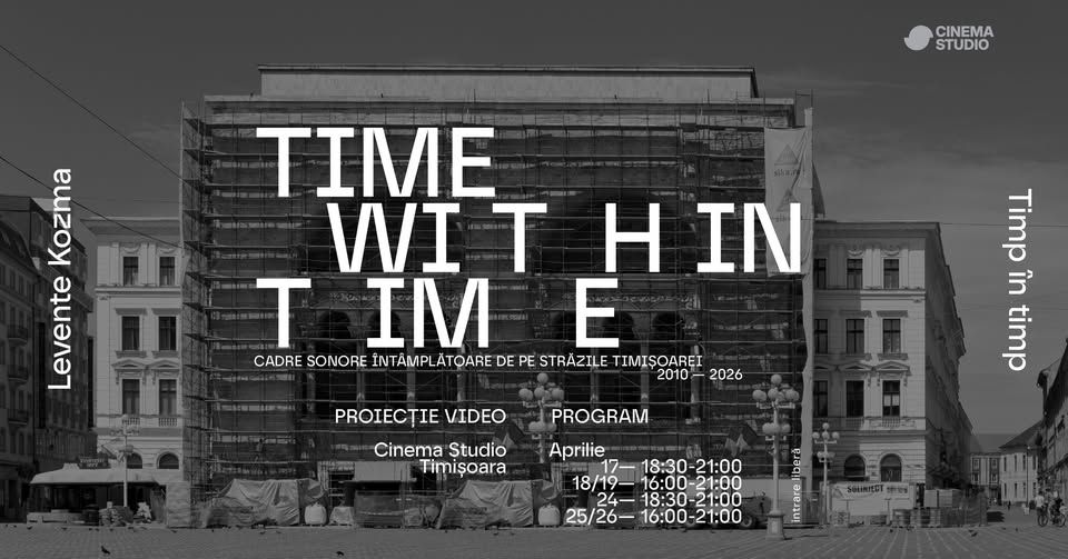 Începem în weekendurile 17-19 și 24-26 aprilie, cu TIME WITHIN TIME – documentar al momentului prezent, realizat de Levente Kozma, care ne provoacă să observăm și să ascultăm activ mediul urban și ceea ce ne înconjoară, cu imagini și cadre sonore surprinse chiar în Timișoara. Artistul va fi prezent la Studio vineri, 17 aprilie, de la ora 18:30, pentru lansarea proiecției.