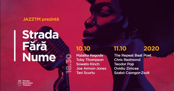 Anul acesta, având în vedere situația actuală, cu cea de-a opta ediție JazzTM amânată pentru 2-4 Iulie 2021, ne-am dorit totuși să aducem un strop de energie la Timișoara, așa s-a născut proiectul JazzTM prezintă Strada Fără Nume, 2 zile menite să împletească spoken word și poezia cu jazz.