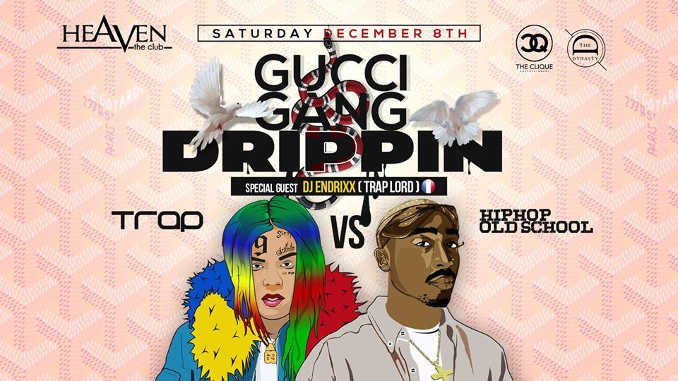 This is a party that you don't want to miss / Gucci Gang TRAP// New school vibe MIXED with Hip-hop & RnB Old school. A mix between the late 90s, 00s to present! All your best tunes!!