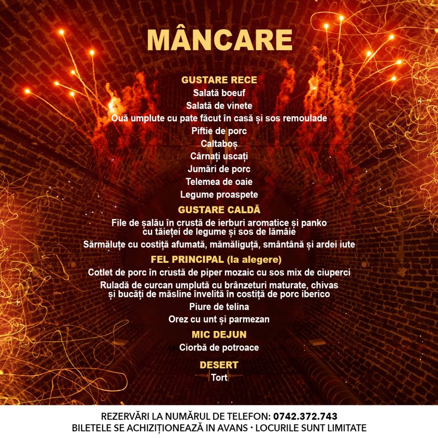 Preț: 410 lei – include un meniu tradițional cu preparate delicioase, pregătite special pentru această noapte specială. (Detalii în curând)