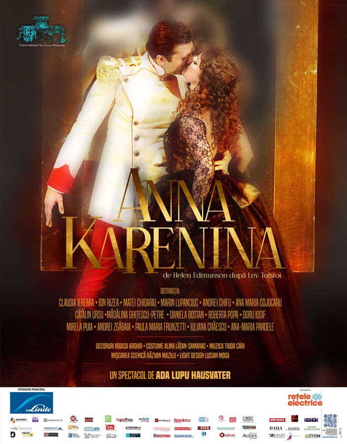 Distribuția: Claudia Ieremia (Anna Karenina), Ion Rizea (Karenin), Matei Chioariu (Vronski), Marin Lupanciuc(Levin), Andrei Chifu (Stiva), Ana Maria Cojocaru (Dolly), Mădălina Ghițescu-Petre (Kitty), Cătălin Ursu (Văduva de pe peron, Nikolai, Mujicul), Daniela Bostan (Prințesa Betsy), (Contesa Vronskaja), Doru Iosif (Preotul), Mirela Puia (Agata, Femeia, Soția lui Nikolai), Andrei Zgăbaia (Administratorul), Paula Maria Frunzetti (Guvernanta, Musafir) și Iuliana Crăescu, Ana-Maria Pandele Andone (Musafiri)