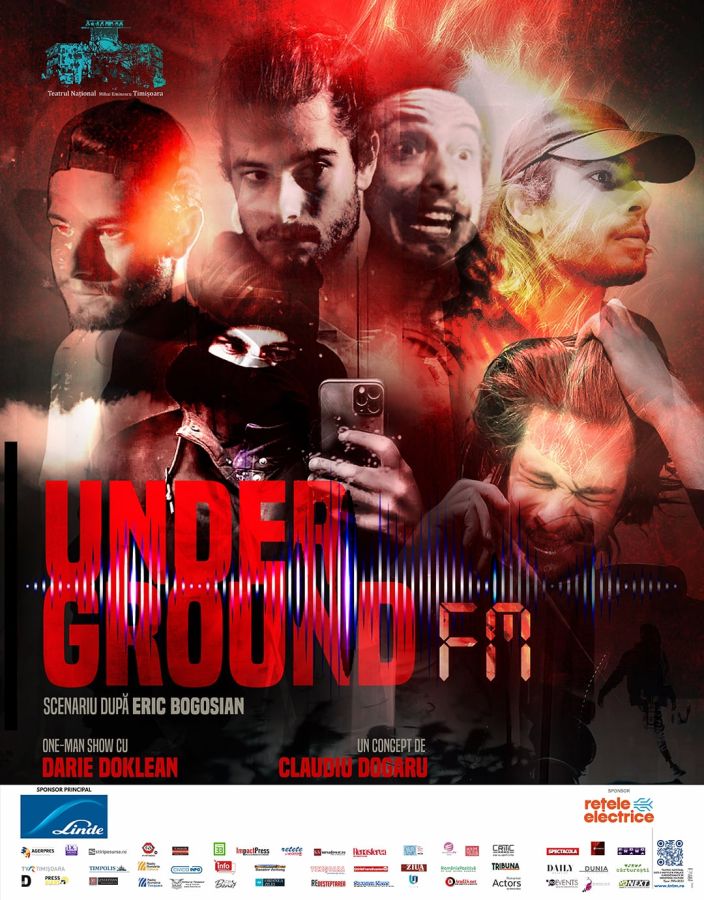 Underground FM este radiografia comică și cam sarcastică a unei lumi din care facem cu toții parte. Caustice și amuzante, familiare și neconformiste, personajele interpretate de tânărul actor Darie Doklean, câștigător al premiului pentru cel mai bun actor la Gala Tânărului Actor HOP 2024, compun în această adaptare după Eric Bogosian un caleidoscop de imagini pe cât de distorsionate, pe atât de exacte și de ușor de recunoscut. După cum afirmă realizatorul conceptului, Claudiu Dogaru, „fiecare personaj oferă o privire în complexitatea dorințelor umane, a limitelor morale și existențiale ale individului, într-o lume obsedată de plăceri efemere și iluzii”.