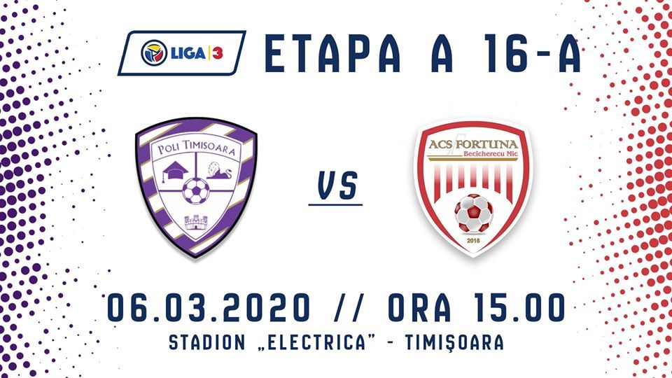 Începe returul şi alb-violeţii debutează pe teren propriu, cu Fortuna Becicherecu Mic. Etapa a 16-a din Liga 3 (seria IV).